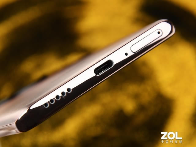 值得注意的是,由于它采用了窄边框设计,所以听筒的位置被放置在了边框顶部,但实际体验和常见的微缝听筒并无二致。而手机底部则集中了扬声器、卡槽、充电孔,话筒则设置于手机顶部。