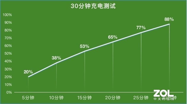 从测试来看,荣耀X30的充电速度超越了官方数据,30分钟充到了88%,速度是非常不错的。一般来说,手机快充可以视为整体续航的一部分,荣耀X30的66W快充可以有效缓解我们每天的续航焦虑,早上起床发现昨晚忘记充电了,你只需要插电充上一会,当你洗漱完,就能让手机电量回复到一个可观的状态,让你放心出门,不用担心半路就没电了。