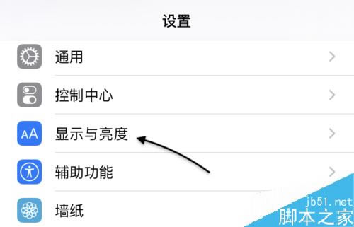 接下来请在列表中找到「显示与亮度」一栏,点击打开,如图所示。