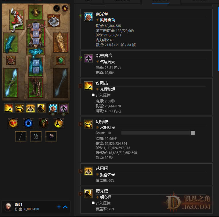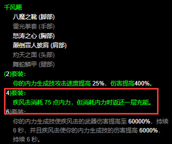 而武僧的千风飓四件套可以让我们的疾风姬从消耗叠层变成消耗内力,只要内力够就可以一直飞。
