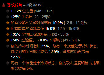 灵魂碎片方面,头部选择恐惧碎片,2级词缀随意,3级威能选攻速爆击或者50%火电伤害均可。