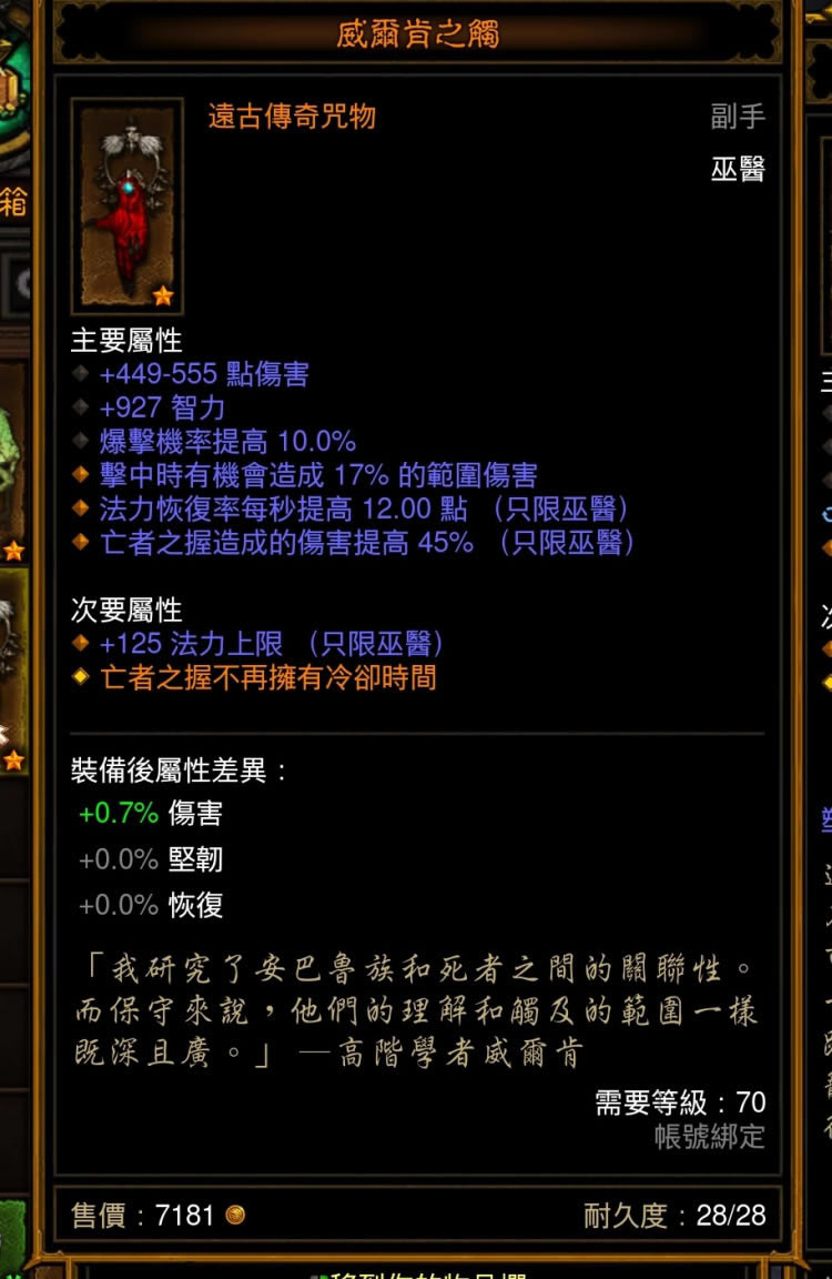 故而,核心中的核心,亡者之握无CD副手-威尔肯之触