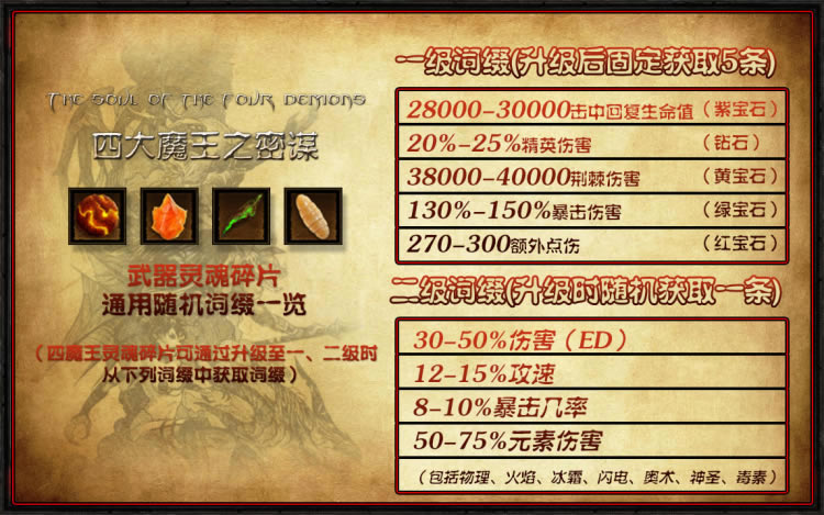 当灵魂碎片升至1级时,将会额外获得所有的宝石特效。2级时则会随机从几个强力效果中选一个。