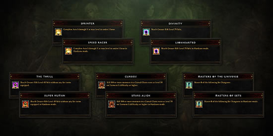 说到征服,我们也在轮换这些内容!听说你喜欢速通?短跑高手和冲刺高手即将回归。听说你喜欢在大秘境中测试自己的勇气?神力和狮心虎胆也要回归了。如果玩家想利用诅咒宝箱来刷新自己的击杀数记录,那么诅咒人生!和群星连珠正是最佳助力。乐意见证自己在没有套装物品的情况下能走多远的玩家也可以从玩的就是心跳和超级人类中获得乐趣。最后,如果你热衷于炫耀自己对套装地下城的掌握,可以借助宇宙洞察者和套装精通者再秀一把。