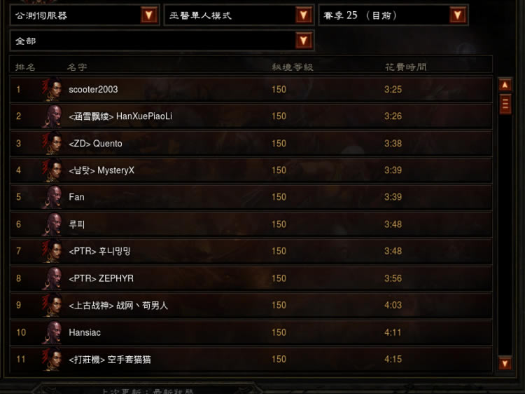 其二为常规组,主要参赛选手为武僧,附带其他职业的常规成绩。本帖中采用的翻译为PTR繁体版,部分翻译有误,比如恐惧碎片,它的基础效果实际上是“每一个冷却中的技能为你提供12.5%的减伤和25%的增伤”