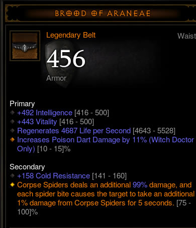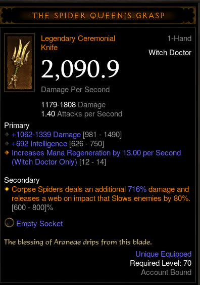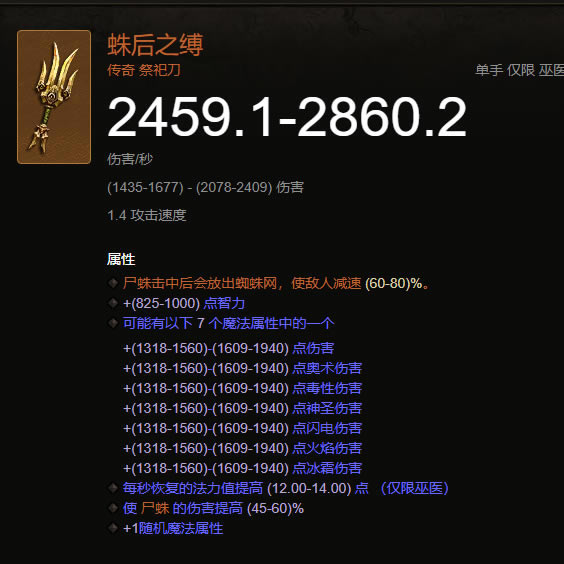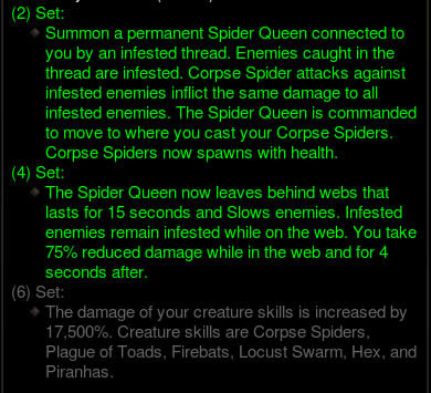 尸蛛造成额外 75-100% 的伤害,每一次蜘蛛咬伤都会使目标受到尸蛛额外 1% 的伤害,持续 5 秒。