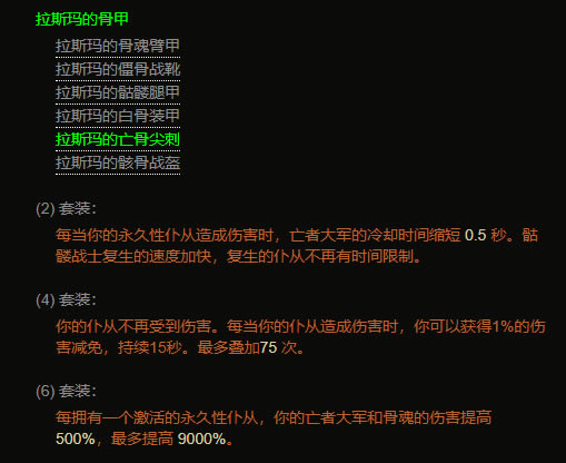 每拥有一个激活的永久性仆从,你的亡者大军伤害提高 1750%,最多提高 31,500%。