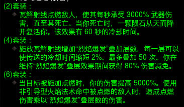 6件套效果实质上是一个独立火焰伤害,伤害为3000%*4件叠层武器伤害,在4件套满层时相当于单次的150000%武器伤害。配合套装的增伤,单次伤害等于7650000%,伤害数字极高。