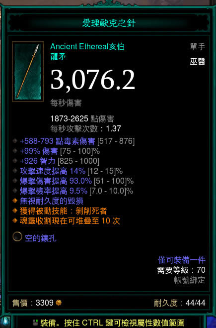 提升200%技能伤害:亡者之握、火蝠、蚀魂、召唤虫群