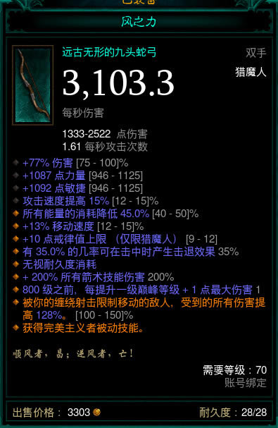 有死灵控场的情况下辅助DH可以带上黑暗之心减伤,所以护腕部位可以去掉明彻换力士,靠风之力的击退来触发特效。