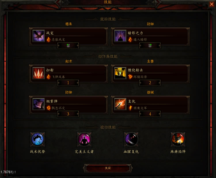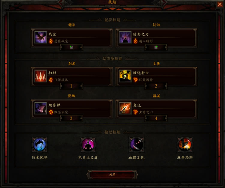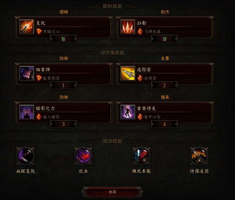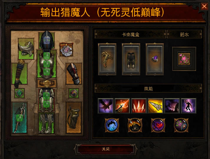 没有死灵/巅峰较低时,输出猎魔人的配装和单人并无多打区别,只需要把被动的追猎快感换成箭术高超即可。