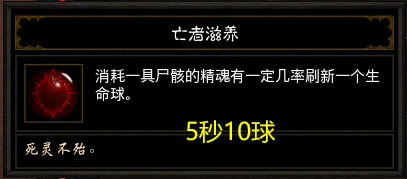 其次是灵气光环的斩杀和聚怪,身上堆积大量球拾之后死灵的灵气光环非常大,配合布戒可以聚怪,斩杀也能提升队伍一层输出。