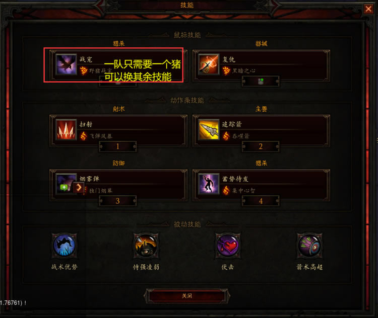 PS:队内还需要一个输出猎魔人把蓄势待发换成野猪战宠。
