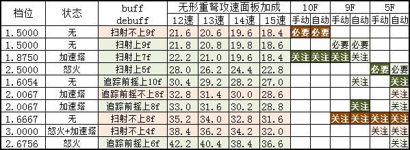 这类重炮需求攻速为加速塔1.875攻速扫射上7f栏,12速需求22.2%攻速,其余的对表查即可。