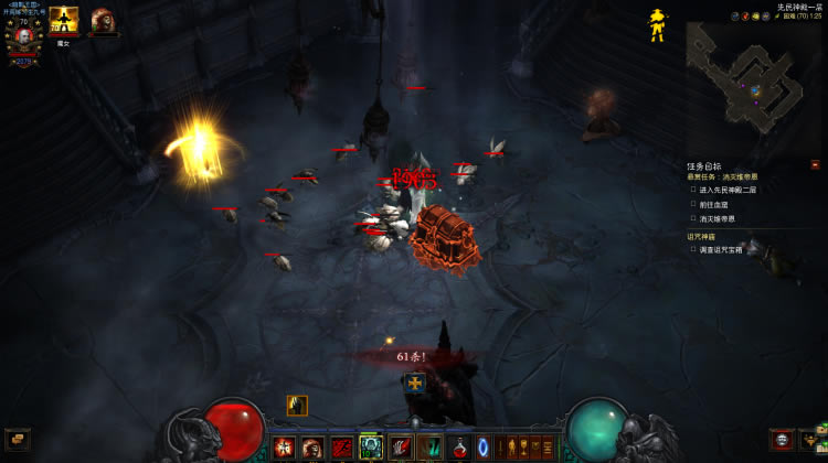 选择先民神殿练级的理由有三:一是此处小虫子血少量多适合尸爆,二是大概率刷新诅咒宝箱任务方便练级和获取装备,三是大概率刷新精美宝箱获得大量装备。