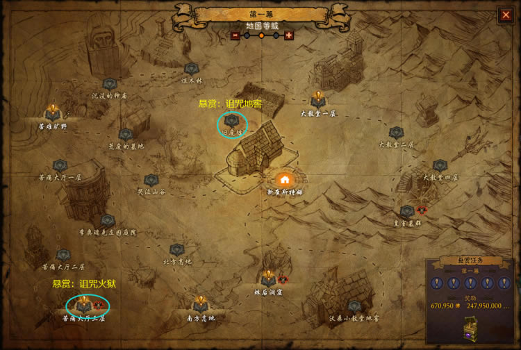 拿降等武器之后,可以提升难度至折磨6,直至70级。难度提升后需要更新身上防具,可以在铁匠处制作或者每一幕的商人处购买。装备属性以坚韧为主。