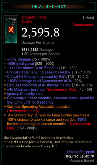 注:PTR二版移除了此武器的暴伤词条,将精魂上限从(45-50)修改为(18-20)