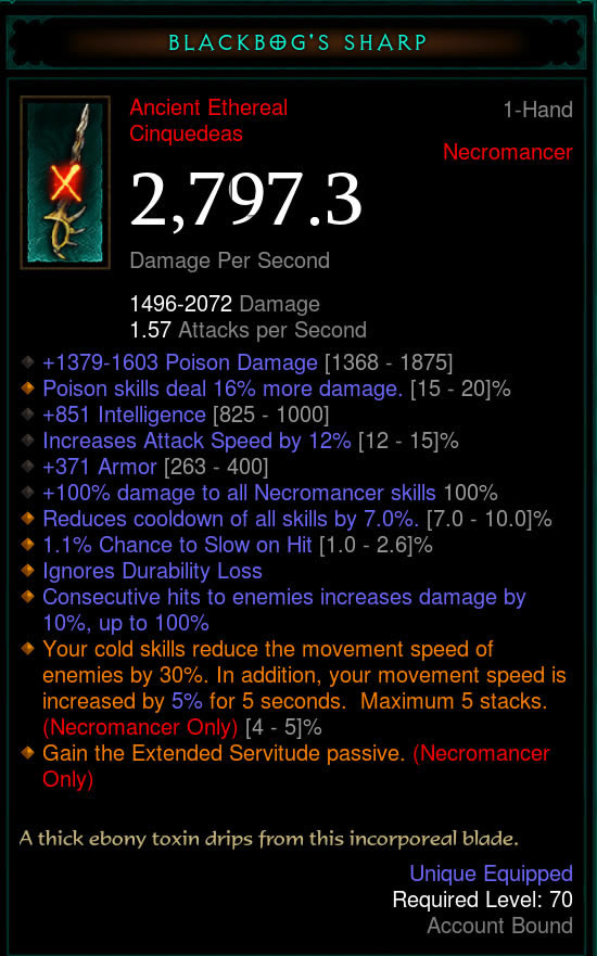 纳伊尔的黑镰:你每使用一个不同的毒性技能都会使你的毒性技能伤害提高(75-100)%,持续15秒。