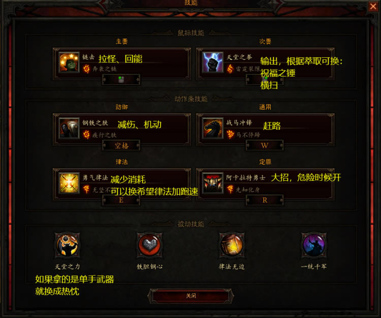 这是圣教军连杀的推荐技能,根据装备萃取的不同可以把天堂之拳换成其余的输出技能(比如祝福之锤、横扫)