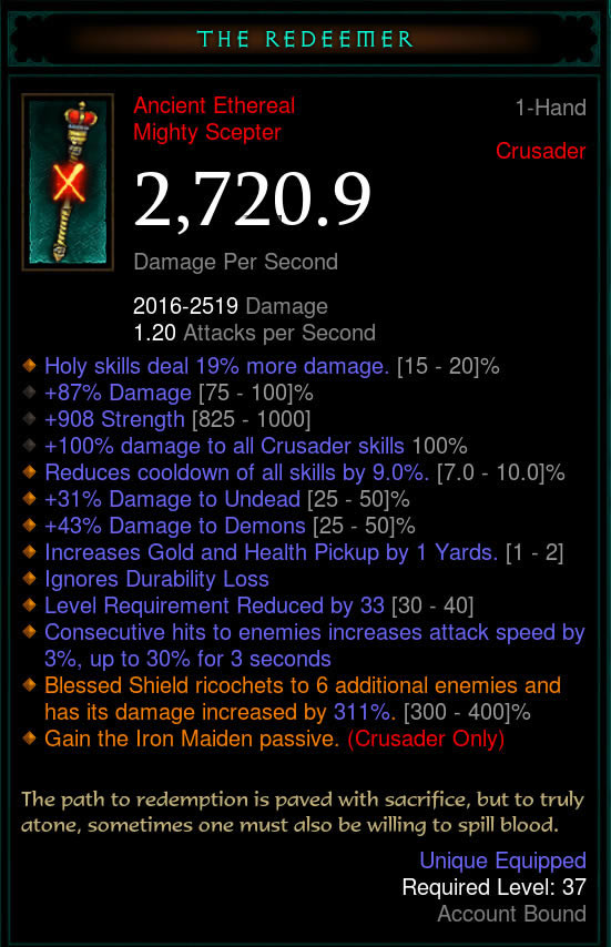 传奇特效:祝福之锤对其击中的前 3 名敌人造成的伤害提高 (200-250)% 。
