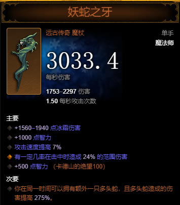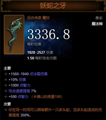 回顾开头部分散件蛇法师的2件武器的选择题。再重新比较2把妖蛇之牙: