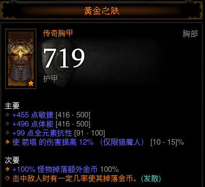 4.胸部黄金之肤,特效击中掉钱,其金币加成词缀固定100也区别于其他胸甲32-35。
