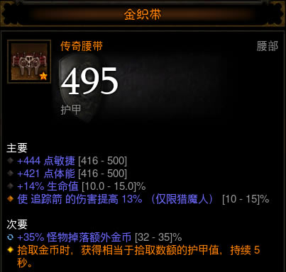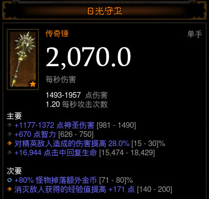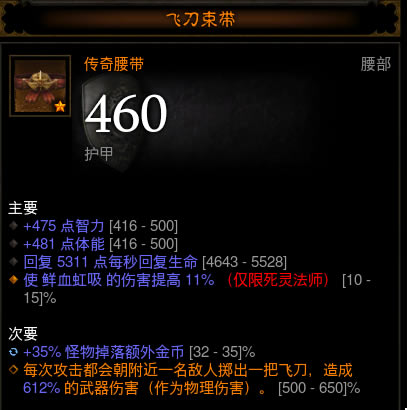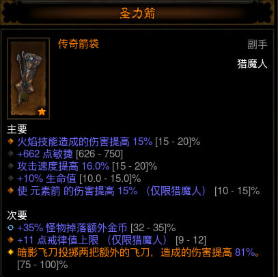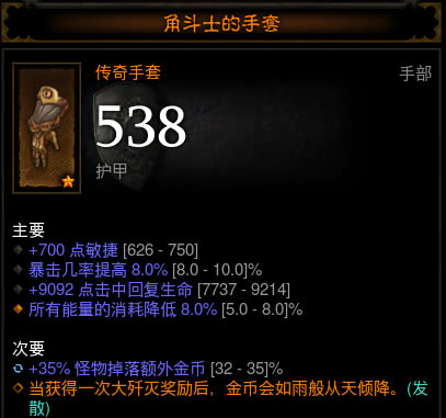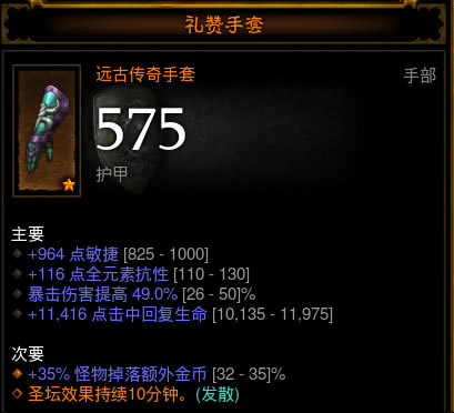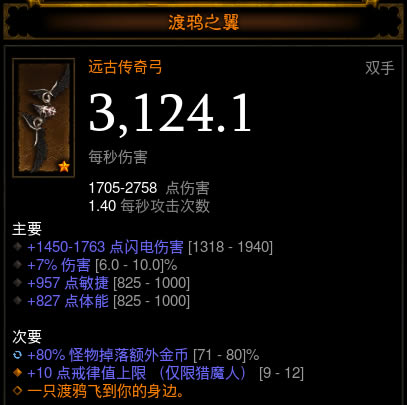 10.主手渡鸦之翼,特效给的渡鸦会捡钱。此外它与单手剑恶魔之舌、单手锤日光守卫的金币词缀71-80也区别于其他装备的32-35。