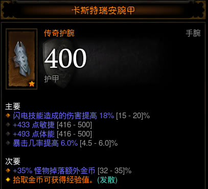 6.腕部卡斯特瑞安的腕甲,特效捡钱加经验。