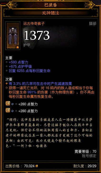 第二,随从穿死神赌注,这条裤子特效能让魔女周边16码范围怪触发增痛。(特此感谢远古天坑大神告知死神赌注能快速促发增痛)