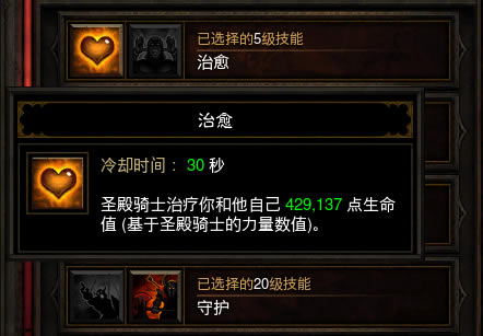 而在实战中治愈这一技能发挥更加出色——冲层时为了追求伤害,玩家通常不会投入过多的词缀在体能方面,大部分情况有个80万血就够了,这时候治愈的回复量约为50%最大生命值,9秒的CD完爆了30秒冷却60%回复的药水。