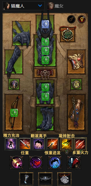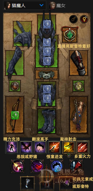 闪避射击 - 凝神射击:任何生成憎恨的主要技能都可以,一般带凝神射击,能额外回戒律。