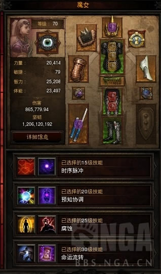 在不带不死圣物的情况下,为了保证魔女的生存,头部我选择了李奥瑞克的王冠插上紫宝石获得46%的生命值加成,再携带黑棘3件套加华戒使魔女获得免疫地板效果,最后在满足25000智力的情况下,给随从装备打上力量卡,使魔女坚韧去到11.99亿,武器用打孔器打孔插紫宝石可以获得大量击回,这样魔女就有了续航,保证不会阵亡了。考虑完魔女的死活,就要考虑魔女能带给玩家本体什么收益了,一方面传统打工戒指神目指环依旧发挥稳定,必带;另一方面开塔手和时光流韵可以发散,使得冲层时塔的利用率大大提高,必带。然后是谢尔曼的缠腰虽然不发散,但触发频率不错,致盲可以帮忙控场。说到控场,银桩刀配合霜燃也能提供冰冻特效,且银桩刀攻速块非常容易卡内置cd触发谢尔曼的缠腰。最后随从的肩膀就用赋归肩垫,遇到差图的时候回城不被打断更容易撕票(目前有bug,随从的赋归肩垫有时候会无法发散影响到法师人物)。随从装备就主要出智力,体能,智力25000之后可以堆力量或者敏捷增加坚韧,cdr对魔女无用,攻速随缘即可。
