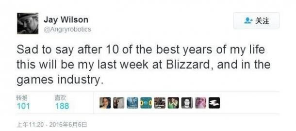 Wilson马上就要离职了。近日他在推特上称,他不仅会离职暴雪,还将彻底离开游戏业,踏上全新的征程。