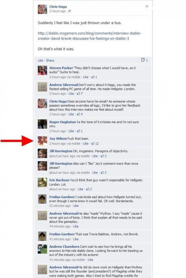 Brevik也对玩家的批判表示了支持。这下子Wilson就不淡定了,在Facebook上给David Brevik回复了一句“FUXX that