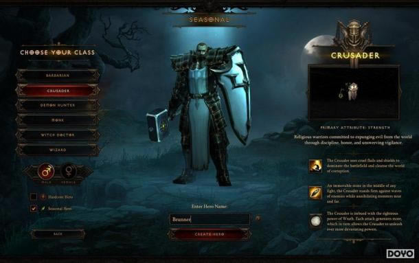 要创建赛季英雄,请先选择你的职业、性别、名称,然后勾选屏幕左下方的“赛季英雄”选框,如图显示: