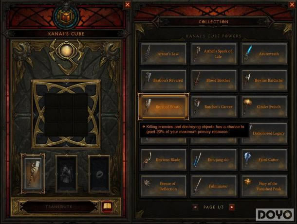 在《暗黑3》2.3版本更新中,暴雪着重描述了一款叫做“卡奈(Kanai)魔盒”的道具,这个受《暗黑2》灵感所开发出来的新机制玩家们也不免会拿来与暗黑2中的“盒子”赫拉迪克方块进行比较。卡奈魔盒为《暗黑3》带来的最大变化则是它的萃取传奇物品特效这一条功用了。魔盒可以为你萃取三条传奇特效,武器类一条、防具类一条以及首饰类一条,这相当于你可以给角色额外装备三条传奇特效。