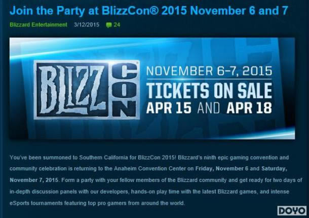 暴雪官方正式宣布2015年暴雪嘉年华将于11月6日与11月7日在加利福尼亚州安纳海姆会展中心召开!