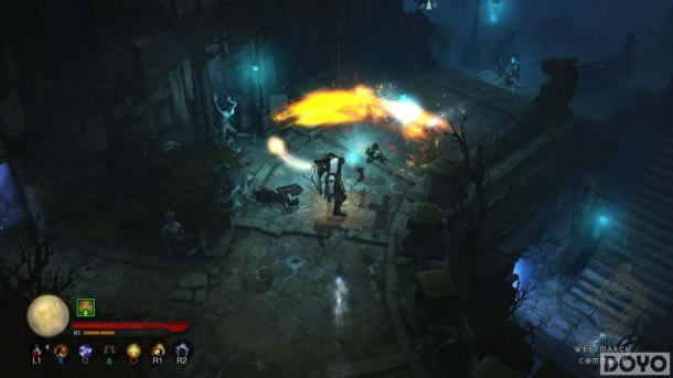新的视角也完全符合家用平台游戏上手柄的操作习惯。在PS4上本作感觉更像是一部动作RPG,要比PC机上键盘和鼠标操作带感得多,用左摇杆控制移动和法术的瞄准,用面板按键控制想要释放的法术。用PS4控制器可以做到比PC上更多的动作控制,唯一的劣势就是需要多花一点时间来进行瞄准。