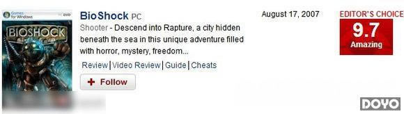 《生化奇兵》在2007年的E3大展上一举夺得年度最佳游戏、最佳射击类游戏、最佳剧情等多项大奖,由于具备了极为真实的视觉表现和内涵厚重的游戏剧情,也同时受到了国内外玩家和业内人士的好评。