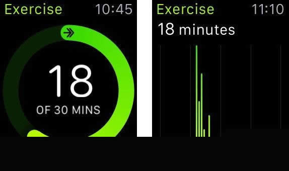 健身活动应用中绿色的圆圈代表锻炼。很多人不知道这个圆圈测量的是什么,自己要做点什么才能让这个圈满起来。苹果的定义就是:你做的任何运动,比如散步、在办公室里走动或者遛狗等,这些不会导致用户心率加速的运动都会统计到锻炼中。