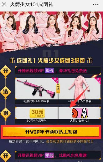 下拉页面可以看到M416粉色皮肤的获得方法,永久皮肤需要通过开通腾讯VIP年卡获得,不过只能从M4皮肤和101套装二选一。