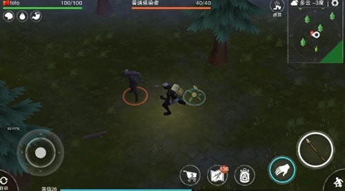 进图之后,先确认一下自己身上的经验值,如果快升级了,就可以挑选一个等级较高的怪物进行挑战,打完之后升级就可以回复状态,减少很多资源消耗。如果离升级还有一段距离,就可以先清小怪,选择好对应的目标,一般选择落单的,确认好目标的方向,靠近一定范围后,点击右下角的下蹲按钮,从背后继续靠近,此时对丧尸的攻击,可以造成三倍伤害。使用同样的方式,就可以很快清理完怪物。