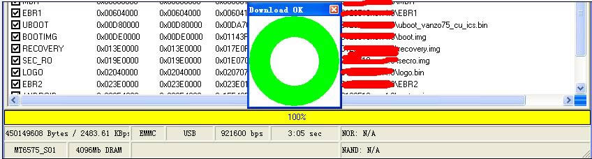 黄线走完之后就是刷机成功了成功了也有一个图标提示的,就是下面这个绿色的小圆圈,出来之后就可以拔掉数据线,开机了。