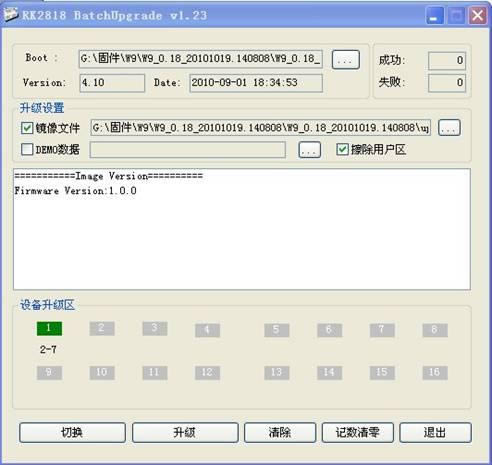 6,点击升级,开始固件升级,用户可以在升级工具的相关窗口查看升级进度。