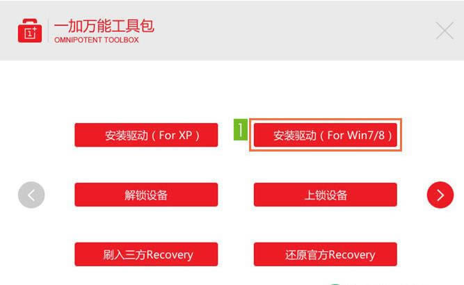 打开 一加万能工具包.exe 后找到 安装驱动(注意根据自己的xp或者win7/win8系统类型进行安装)