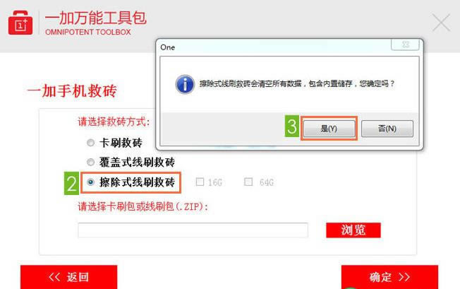 选择 擦除式线刷救砖 ,并确定,如下图: