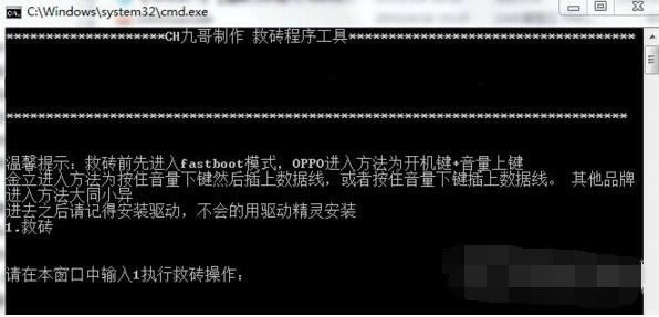4.然后解压下载好的救砖包,运行里面的“救砖双击我”,输入“1”按回车键