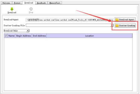 5:然后点击软件上的Scatter-loading按钮选择软件对应的文件。