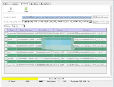 8:手机在关机状态下,手机完全关机状态下按住【音量上键】的同时用usb数据线将手机与电脑端连接好,然后软件自动开始下载,无需任何操作,如下图显示,正在下载(下载时间有点长,请耐心等待):