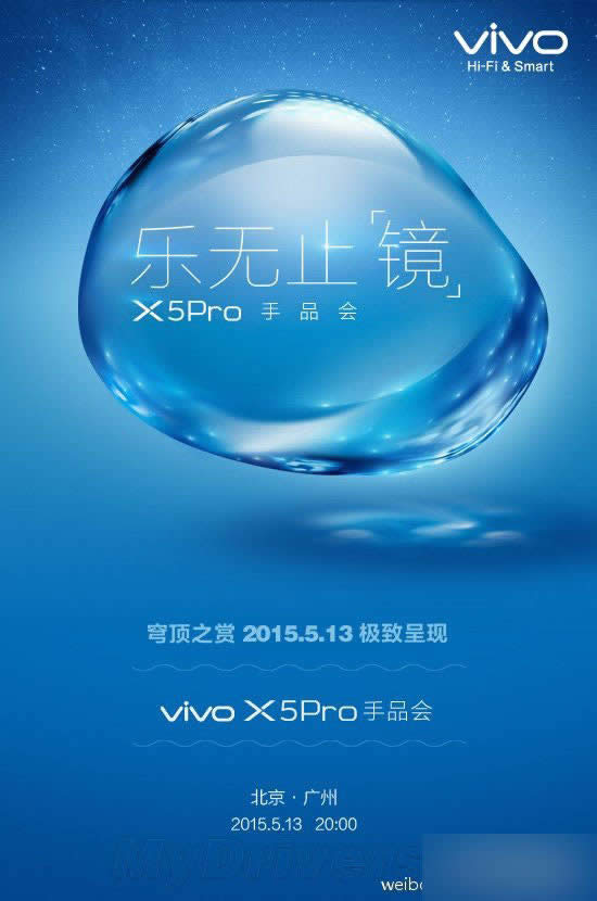 vivo手机今天早上在微博发布消息透露称将会宣布一个重大消息,现在这一重大消息来了,就是vivo X5Pro发布时间已经确定了,将于5月13日正式上市。
